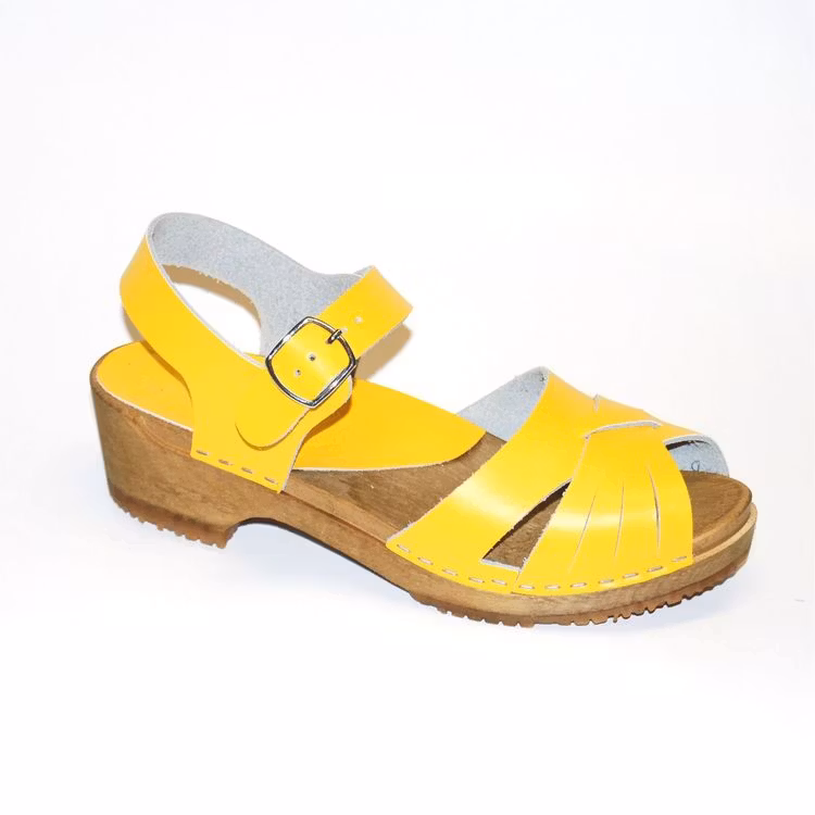 Margot gul träskosandal 540 kr Margot gul träskosandal på låg färgad träbotten ca 5 cm hög klack. Ovandel i äkta läder med skyddande ytskikt av Pu. Finns i storlekar 36-42. Produkten är tyvärr slut i lager. :( Dela Lagersaldo: Artikelnummer: 94 Information Margot gul träskosandal på låg färgad träbotten ca 5 cm hög klack. Ovandel i äkta läder med skyddande ytskikt av Pu. Finns i storlekar 36-42.